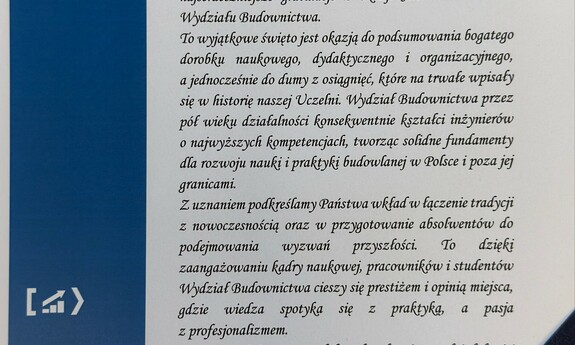 Jubileusz 50-lecia Wydziału Budownictwa - listy gratulacyjne