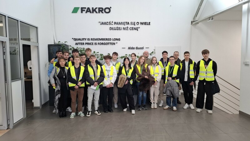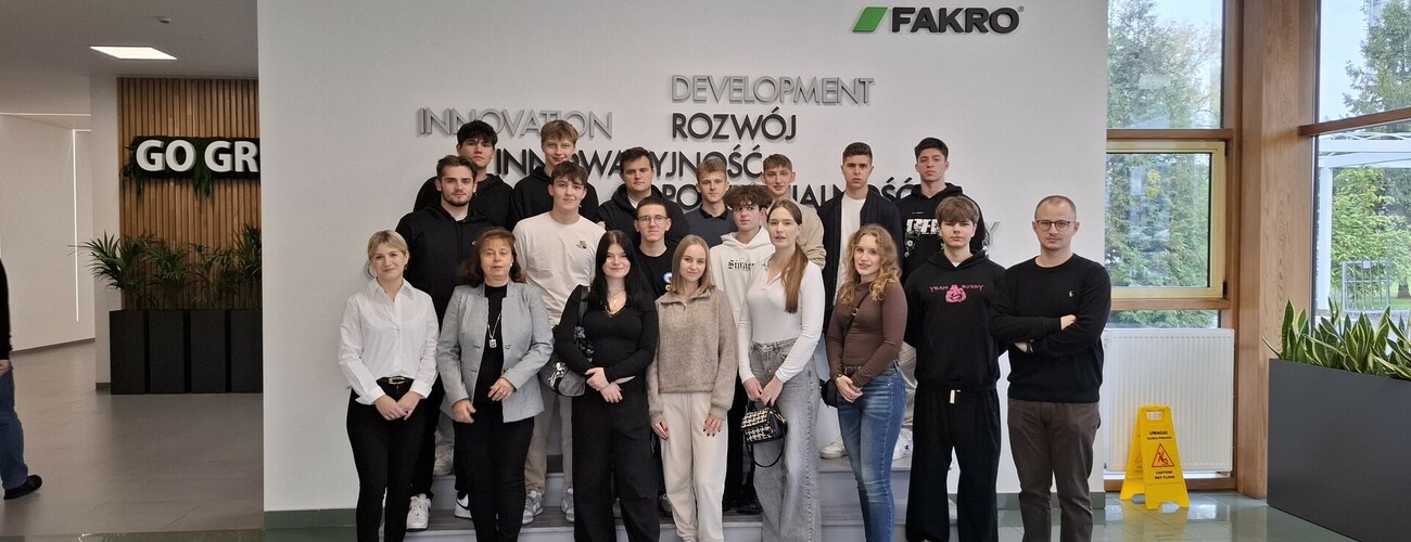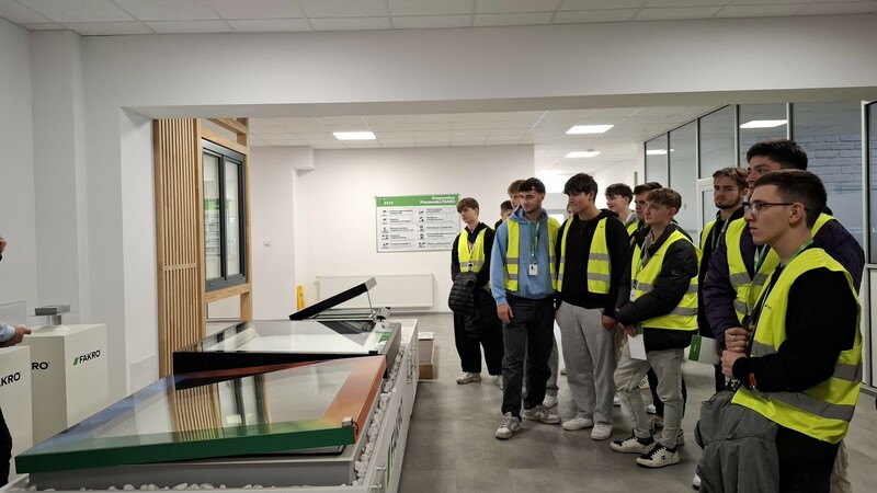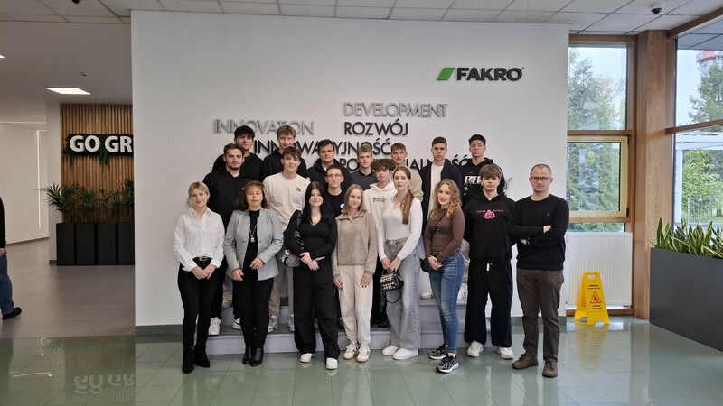 W dniu 28 listopada 2025 r. studenci z Koła Naukowego Eco-Building mieli okazję uczestniczyć w wizycie studyjnej w siedzibie firmy FAKRO, jednego z najbardziej innowacyjnych i prężnie rozwijających się przedsiębiorstw w Polsce, będącego światowym liderem w produkcji okien dachowych. Wizyta umożliwiła studentom zobaczenie z bliska nowoczesnych procesów produkcyjnych i logistycznych, świadczących o globalnym rozwoju firmy. Podczas wizyty studenci poznali innowacyjny asortyment FAKRO, obejmujący zaawansowane technologicznie okna dachowe i do dachów płaskich, akcesoria, schody strychowe oraz stolarkę pionową. Szczególną uwagę zwrócono na zaangażowanie FAKRO w kwestie ekologii i energooszczędności, co jest kluczowe z punktu widzenia budownictwa zrównoważonego. Wizyta stanowi cenne uzupełnienie wiedzy akademickiej, pozwalając na bezpośrednie zetknięcie się z praktyką inżynierską i rynkiem nowoczesnych materiałów budowlanych.